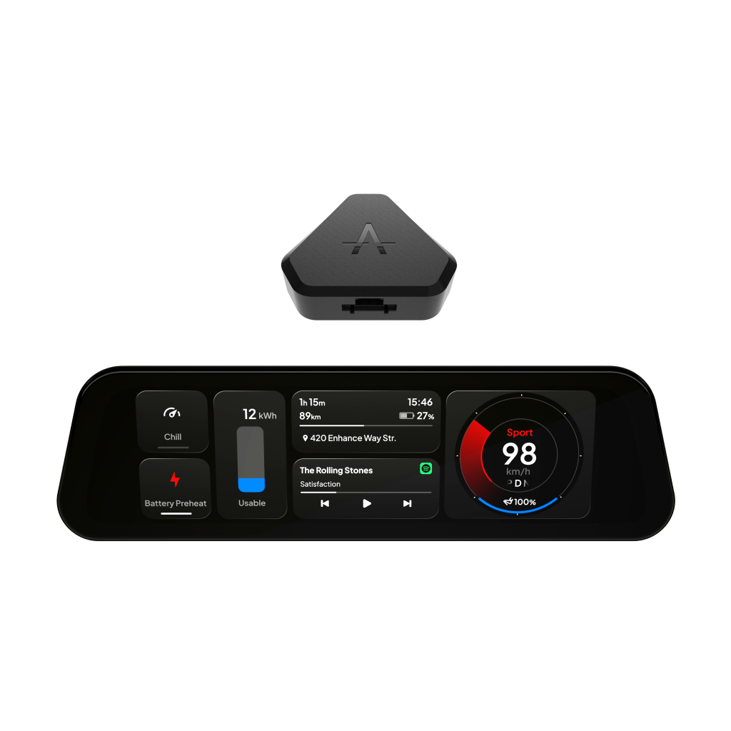 Perfekte Integration – Smart & Easy Das Enhance S3XY Dash wurde speziell für Tesla-Fahrzeuge entwickelt und lässt sich nahtlos in den Innenraum integrieren. Durch das mitgelieferte magnetische Stativ kann das Display einfach und flexibel positioniert werden – ob als klassisches Kombiinstrument hinter dem Lenkrad oder wie ein Heads-Up-Display hinter der Frontscheibe. Je nach Variante kann das Dash einzeln oder zusammen mit dem Gen2 Commander bestellt werden – letzterer ist Voraussetzung für die volle Funktionalität des Systems.