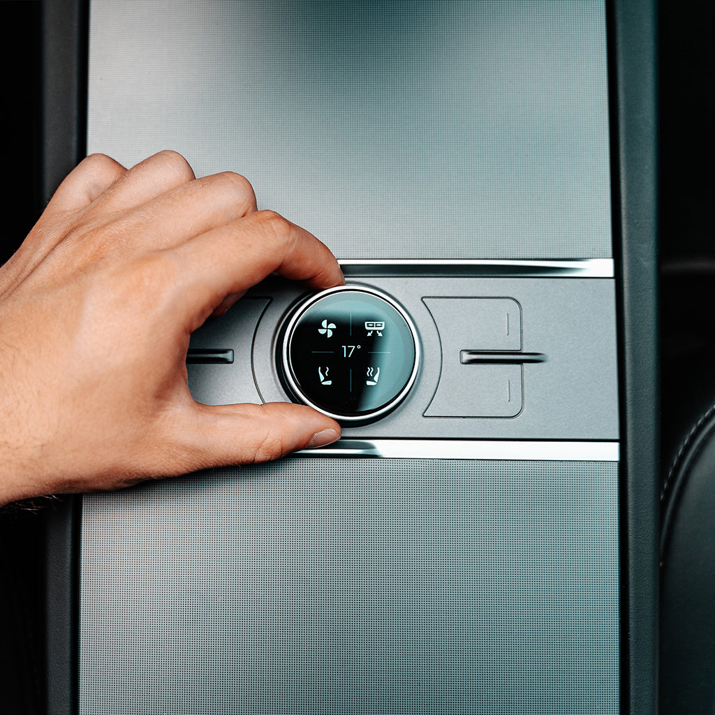 The S3XY Knob fits perfectly in every Tesla M3/MY 2021+ central console, and it looks like a part of the car.