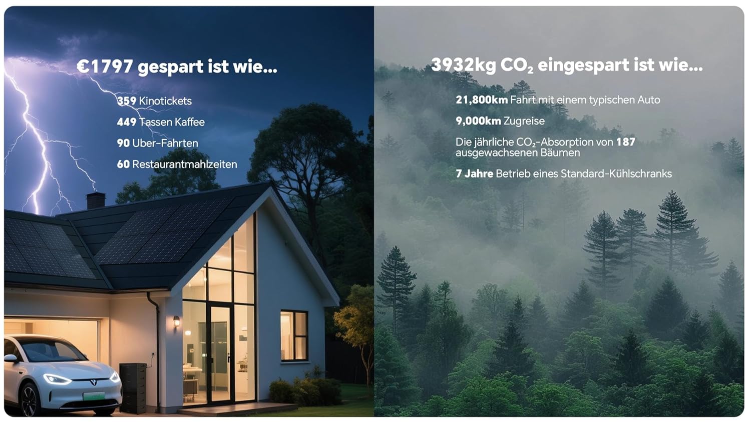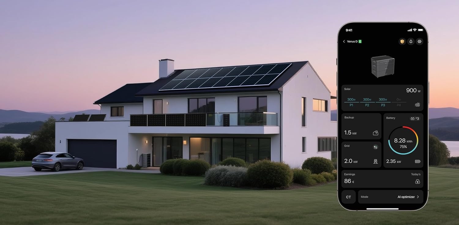 Durch den Anschluss von bis zu sechs zusätzlichen Venus-D-Erweiterungsakkus lässt sich die Kapazität des Systems flexibel auf 15,36 kWh ausbauen. Damit überbrückst Du problemlos längere Schlechtwetterphasen und erhöhst die Unabhängigkeit von steigenden Strompreisen.