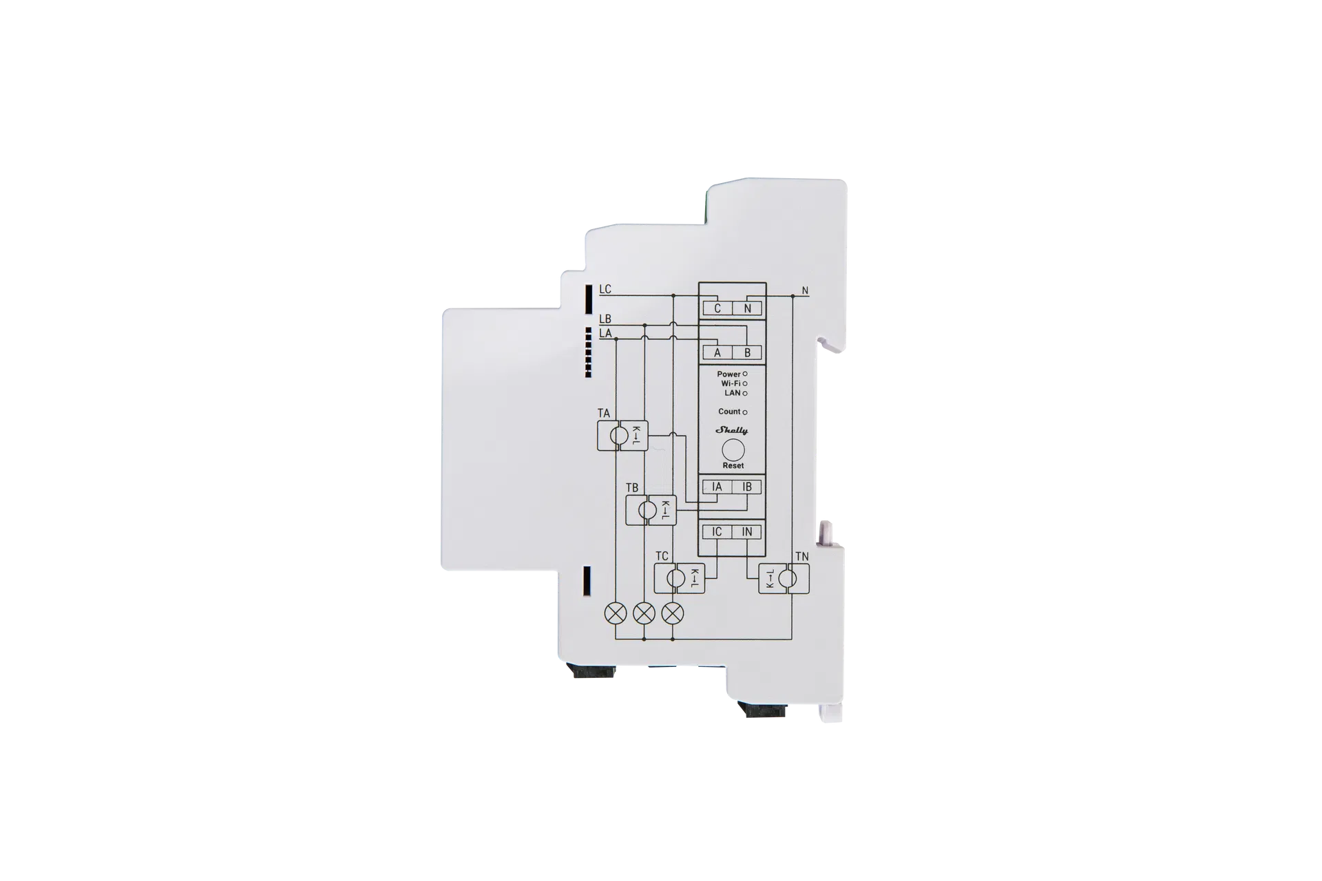 Der Shelly Pro 3EM 400A ist ein intelligenter 3-Phasen-Stromzähler der neuesten Generation, der Ihren Energieverbrauch exakt misst und in Echtzeit überwacht. Das WLAN-, LAN- und Bluetooth-fähige Gerät ist DIN-Schienen-kompatibel und bietet eine Messgenauigkeit von bis zu 1 %.